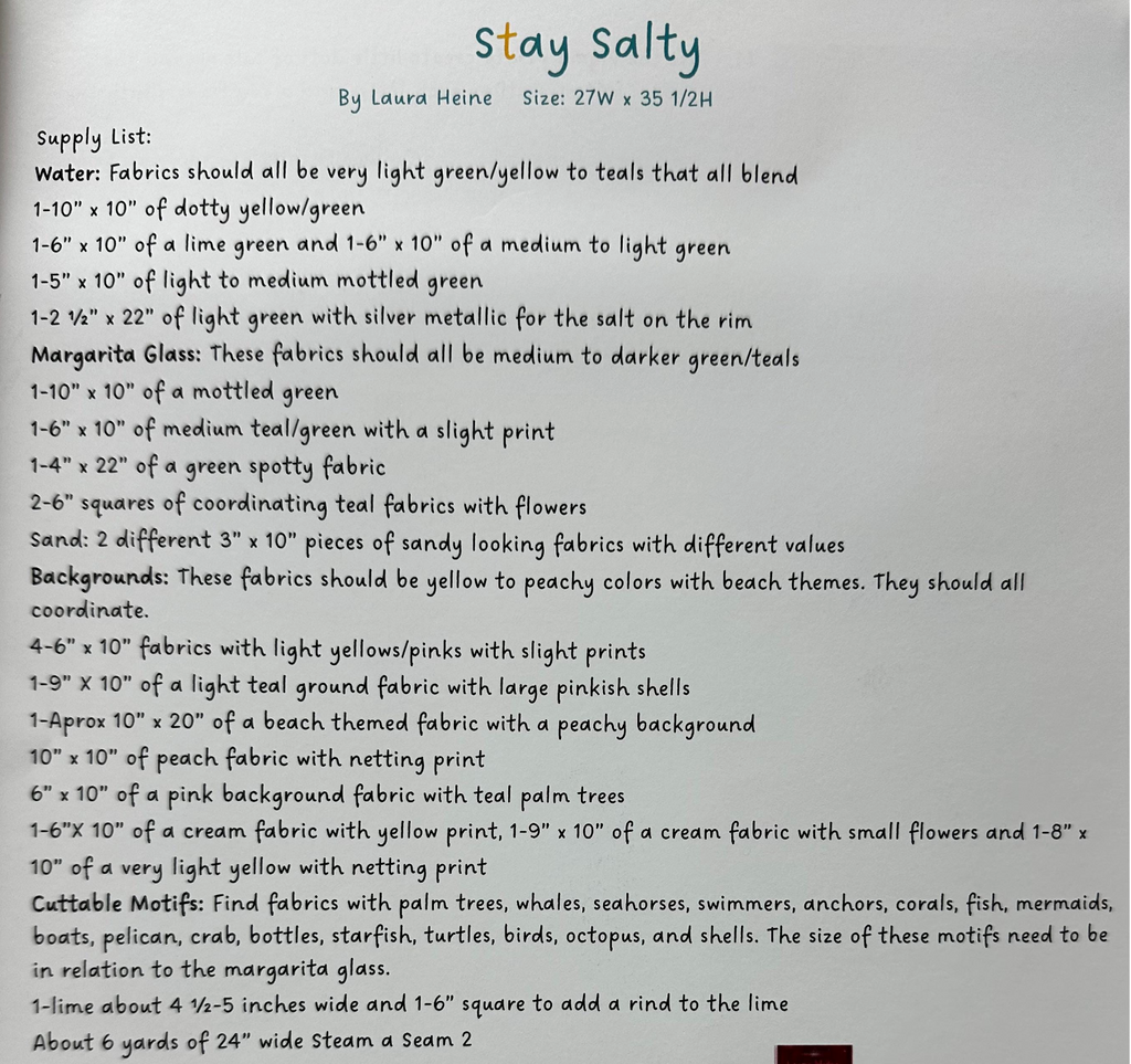 Stay Salty Margarita Collage Quilt Kit by Doris Rice, Certified Collage Instructor